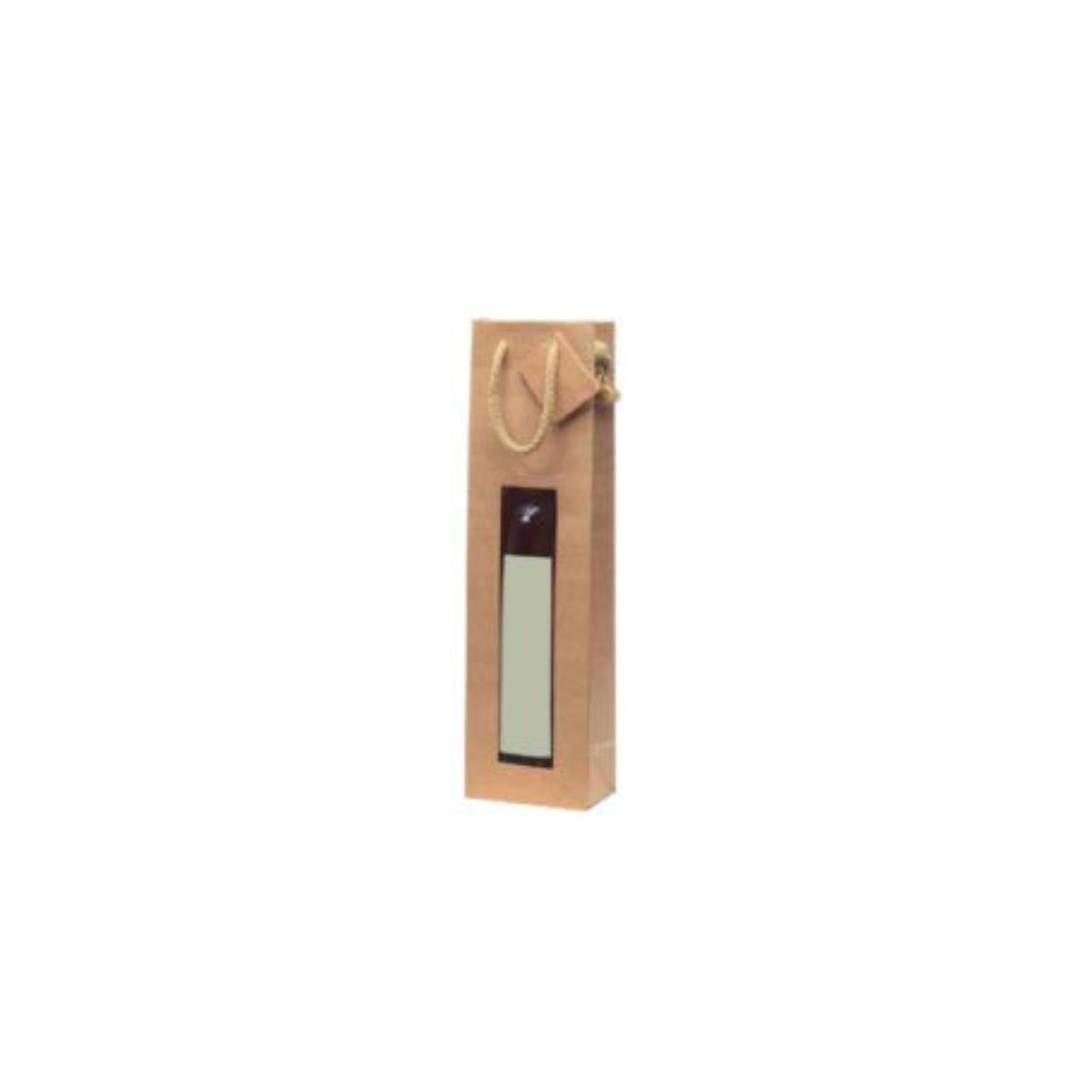 Om uw bestelde fles wijn netjes te verpakken, kunt u deze leuke Kraft wijntas met venster mee bestellen. Er zit een klein labeltje aan waar een persoonlijke boodschap opgeschreven kan worden. Geen gedoe meer met cadeaupapier!